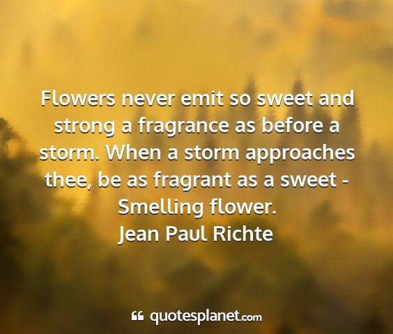 Flowers never emit so sweet and strong a fragrance as before a storm. When a storm approaches thee, be as fragrant as a sweet - Smelling flower.Jean Paul Richte