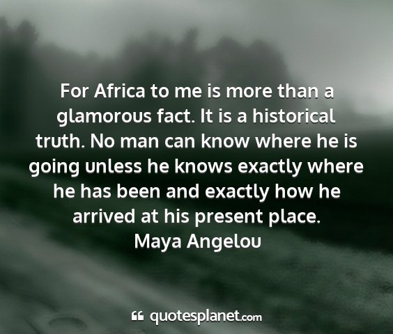 For Africa to me is more than a glamorous fact. It is a historical truth. No man can know where he is going unless he knows exactly where he has been and exactly how he arrived at his present place.Maya Angelou