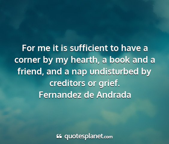 For me it is sufficient to have a corner by my hearth, a book and a friend, and a nap undisturbed by creditors or grief.Fernandez de Andrada