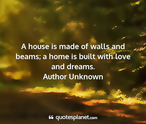 A house is made of walls and beams; a home is built with love and dreams.