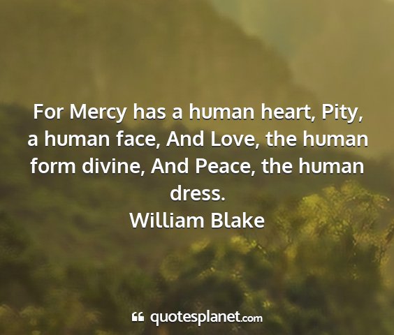 For Mercy has a human heart, Pity, a human face, And Love, the human form divine, And Peace, the human dress.William Blake