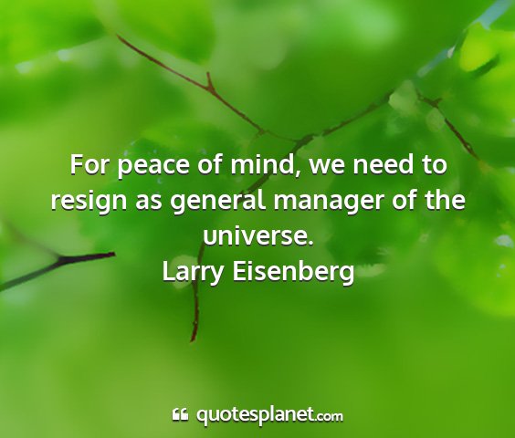 For peace of mind, we need to resign as general manager of the universe.