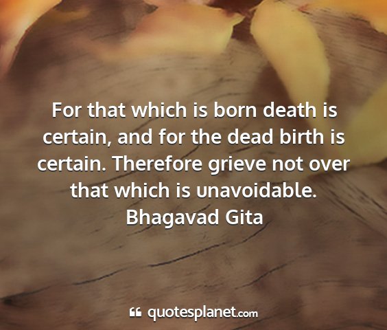 For that which is born death is certain, and for the dead birth is certain. Therefore grieve not over that which is unavoidable.Bhagavad Gita