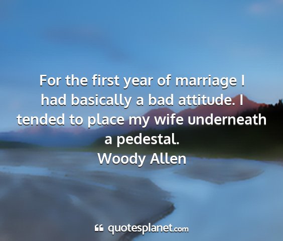 For the first year of marriage I had basically a bad attitude. I tended to place my wife underneath a pedestal.Woody Allen
