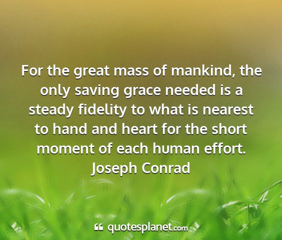For the great mass of mankind, the only saving grace needed is a steady fidelity to what is nearest to hand and heart for the short moment of each human effort.Joseph Conrad