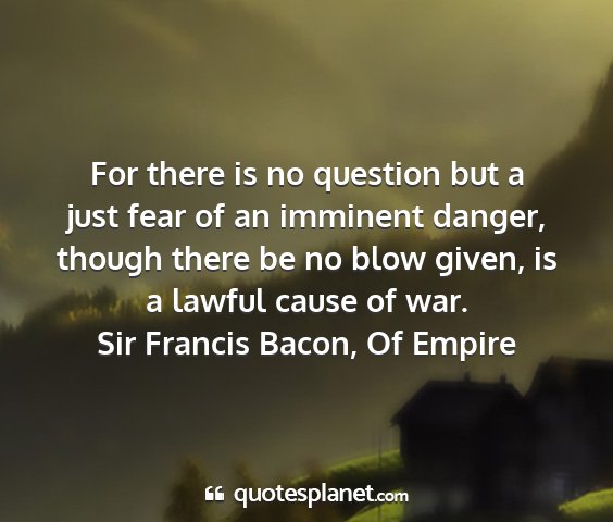 For there is no question but a just fear of an imminent danger, though there be no blow given, is a lawful cause of war.Sir Francis Bacon, Of Empire