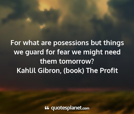 For what are posessions but things we guard for fear we might need them tomorrow?Kahlil Gibron, (book) The Profit