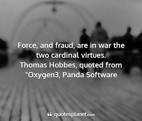 Force, and fraud, are in war the two cardinal virtues.Thomas Hobbes, quoted from "Oxygen3, Panda Software