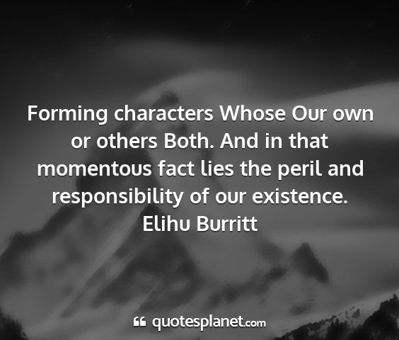Forming characters Whose Our own or others Both. And in that momentous fact lies the peril and responsibility of our existence.Elihu Burritt