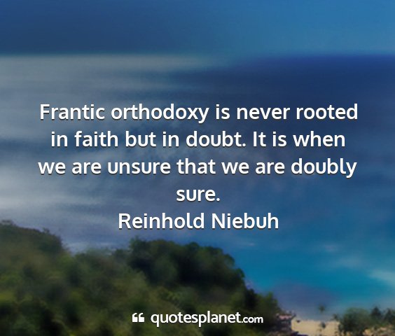 Frantic orthodoxy is never rooted in faith but in doubt. It is when we are unsure that we are doubly sure.Reinhold Niebuh
