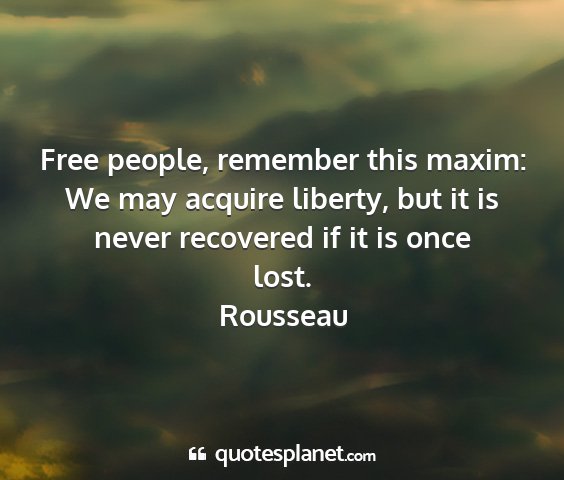 Free people, remember this maxim: We may acquire liberty, but it is never recovered if it is once lost.Rousseau