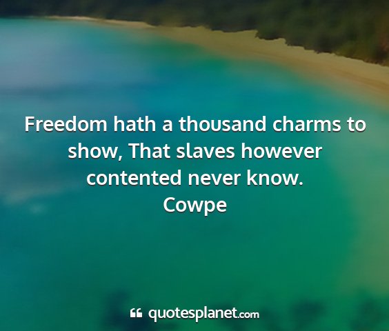 Freedom hath a thousand charms to show, That slaves however contented never know.