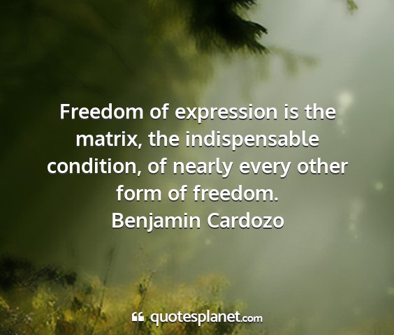 Freedom of expression is the matrix, the indispensable condition, of nearly every other form of freedom.Benjamin Cardozo