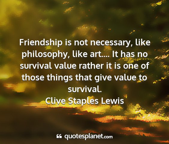 Friendship is not necessary, like philosophy, like art.... It has no survival value rather it is one of those things that give value to survival.Clive Staples Lewis