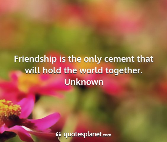 Friendship is the only cement that will hold the world together.