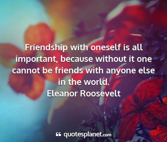 Friendship with oneself is all important, because without it one cannot be friends with anyone else in the world.Eleanor Roosevelt