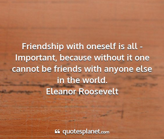 Friendship with oneself is all - Important, because without it one cannot be friends with anyone else in the world.Eleanor Roosevelt