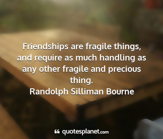 Friendships are fragile things, and require as much handling as any other fragile and precious thing.Randolph Silliman Bourne