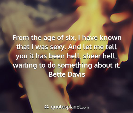 From the age of six, I have known that I was sexy. And let me tell you it has been hell, sheer hell, waiting to do something about it.Bette Davis