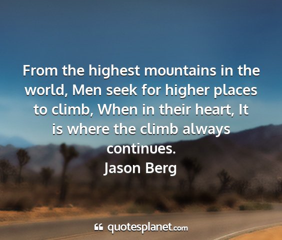 From the highest mountains in the world, Men seek for higher places to climb, When in their heart, It is where the climb always continues.Jason Berg