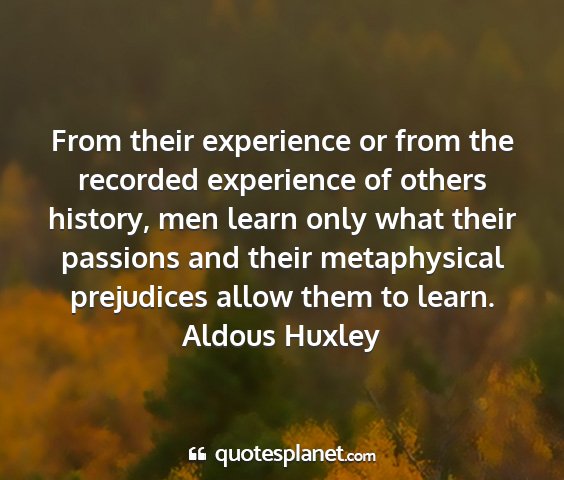 From their experience or from the recorded experience of others history, men learn only what their passions and their metaphysical prejudices allow them to learn.Aldous Huxley