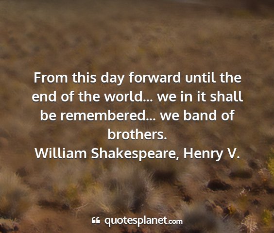 From this day forward until the end of the world... we in it shall be remembered... we band of brothers.William Shakespeare, Henry V.