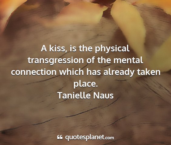 A kiss, is the physical transgression of the mental connection which has already taken place.Tanielle Naus