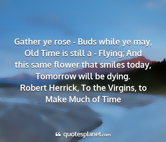 Gather ye rose - Buds while ye may, Old Time is still a - Flying; And this same flower that smiles today, Tomorrow will be dying.Robert Herrick, To the Virgins, to Make Much of Time