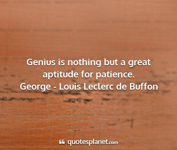 Genius is nothing but a great aptitude for patience.