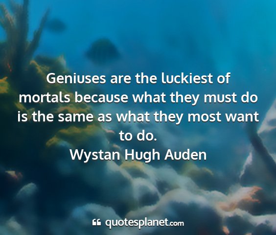 Geniuses are the luckiest of mortals because what they must do is the same as what they most want to do.Wystan Hugh Auden