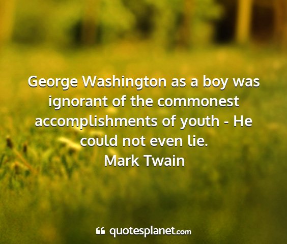 George Washington as a boy was ignorant of the commonest accomplishments of youth - He could not even lie.Mark Twain