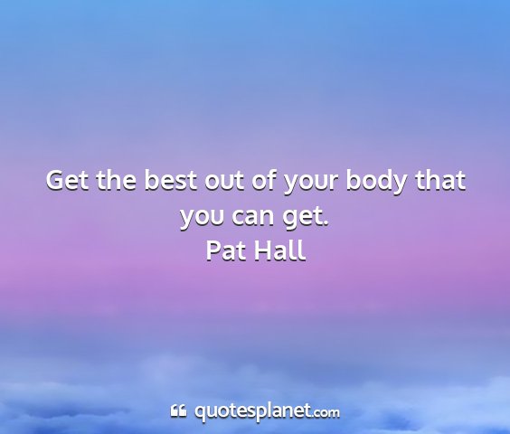 Get the best out of your body that you can get.