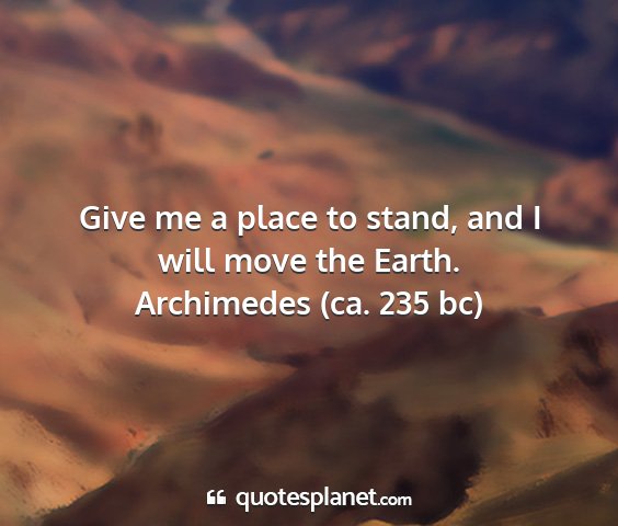Give me a place to stand, and I will move the Earth.