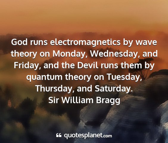 God runs electromagnetics by wave theory on Monday, Wednesday, and Friday, and the Devil runs them by quantum theory on Tuesday, Thursday, and Saturday.Sir William Bragg