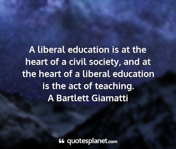 A liberal education is at the heart of a civil society, and at the heart of a liberal education is the act of teaching.A Bartlett Giamatti