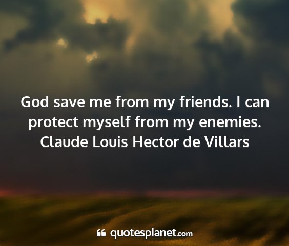 God save me from my friends. I can protect myself from my enemies.