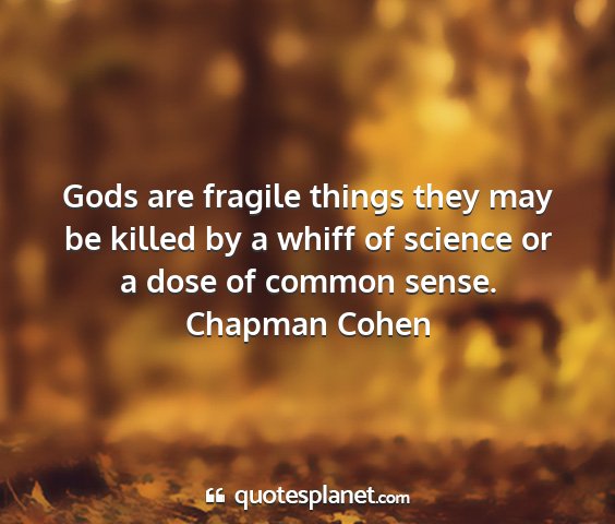 Gods are fragile things they may be killed by a whiff of science or a dose of common sense.Chapman Cohen