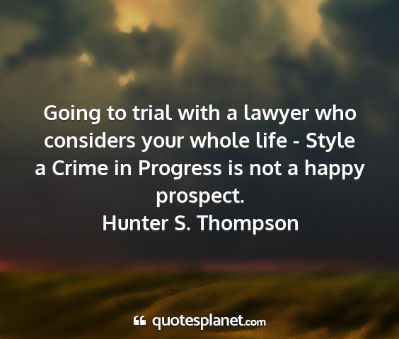 Going to trial with a lawyer who considers your whole life - Style a Crime in Progress is not a happy prospect.Hunter S. Thompson