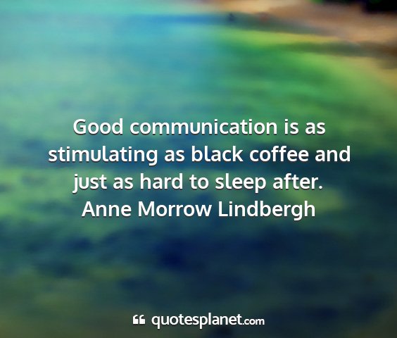 Good communication is as stimulating as black coffee and just as hard to sleep after.Anne Morrow Lindbergh