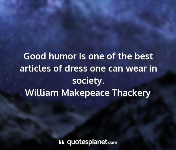Good humor is one of the best articles of dress one can wear in society.