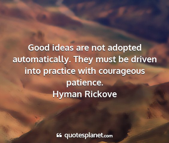 Good ideas are not adopted automatically. They must be driven into practice with courageous patience.Hyman Rickove