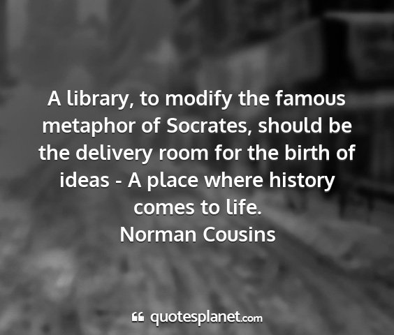 A library, to modify the famous metaphor of Socrates, should be the delivery room for the birth of ideas - A place where history comes to life.Norman Cousins