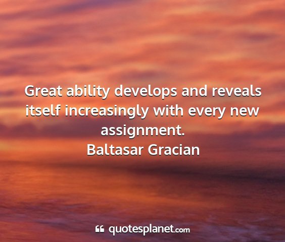 Great ability develops and reveals itself increasingly with every new assignment.