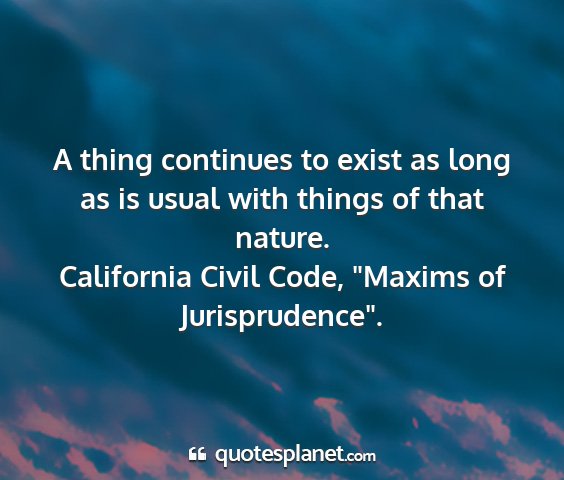 A thing continues to exist as long as is usual with things of that nature.California Civil Code, "Maxims of Jurisprudence".