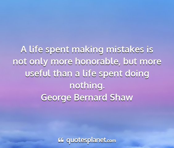 A life spent making mistakes is not only more honorable, but more useful than a life spent doing nothing.George Bernard Shaw