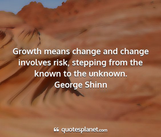 Growth means change and change involves risk, stepping from the known to the unknown.