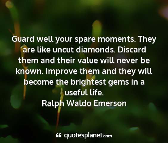 Guard well your spare moments. They are like uncut diamonds. Discard them and their value will never be known. Improve them and they will become the brightest gems in a useful life.Ralph Waldo Emerson