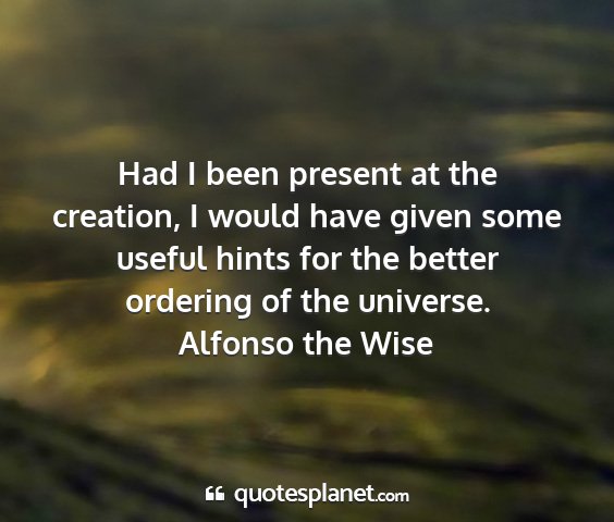 Had I been present at the creation, I would have given some useful hints for the better ordering of the universe.Alfonso the Wise