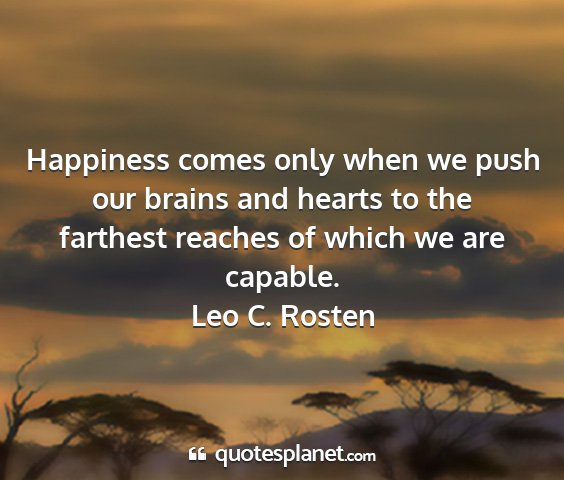 Happiness comes only when we push our brains and hearts to the farthest reaches of which we are capable.Leo C. Rosten