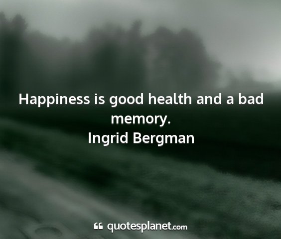 Happiness is good health and a bad memory.